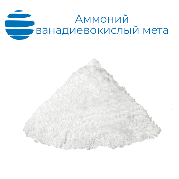 Аммоний ванадиевокислый мета (аммоний метаванадат, монованадат аммония) - неорганическое вещество, аммиачная соль метаванадиевой кислоты. Химическая формула - NH4VO3. Хорошо растворяется в горячей воде (меньше в холодной) и водном растворе аммиака. Не растворяется в этиловом спирте и диэтиловом эфире. Взаимодействует с кислотами, щелочами, гидросульфатом и гидросульфидом аммония Температур плавления метаванадата аммония: + 140°С. Аммоний ванадиевокислый мета применяется: